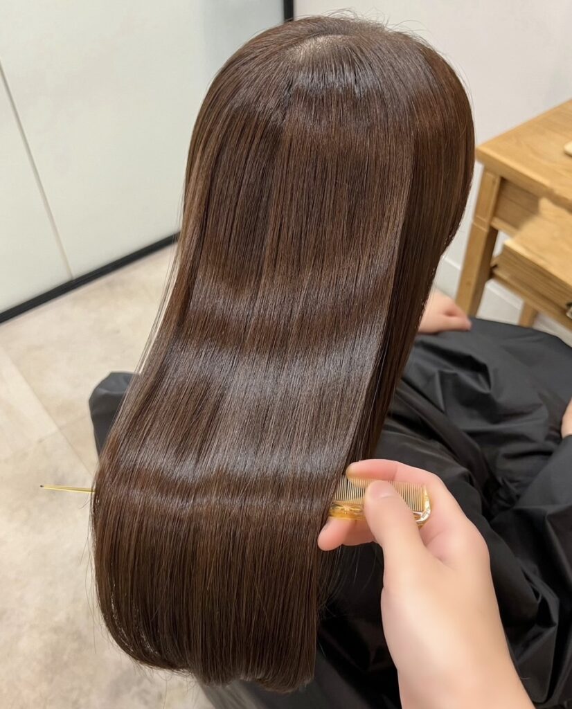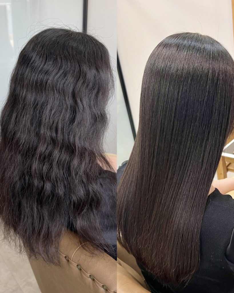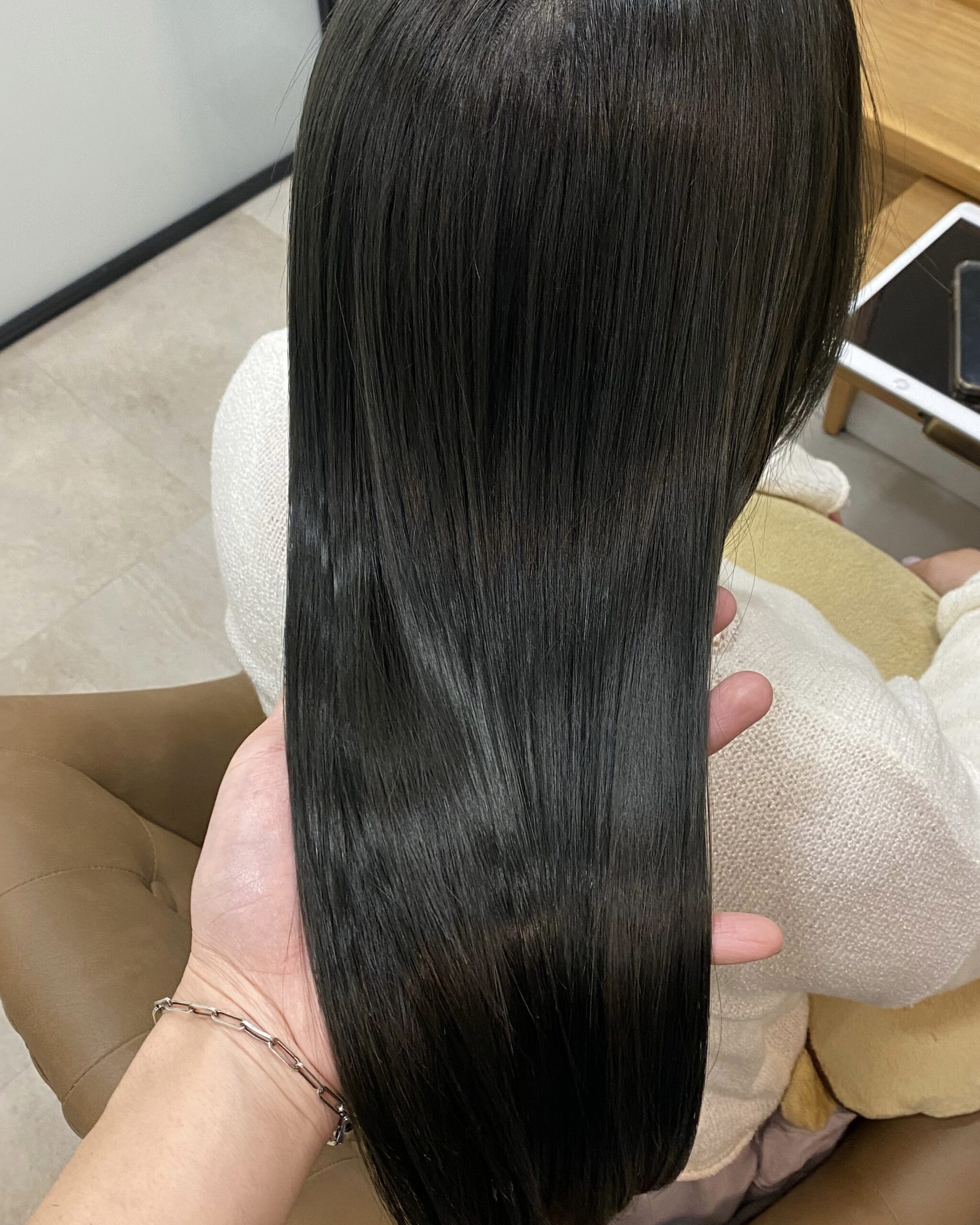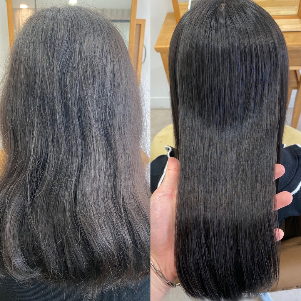 ダメージを最小限に抑えた縮毛矯正。指通りの良いやわらかい質感の自然なツヤ髪に♪