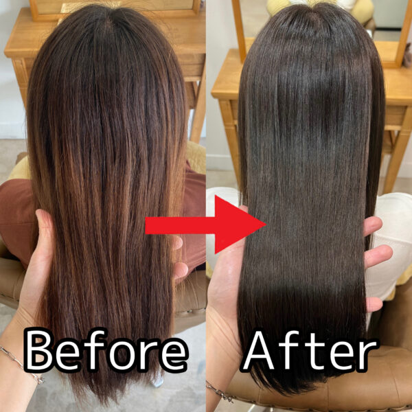 毛先部分には薬剤が反応して痛まないように特殊なトリートメントで保護します。