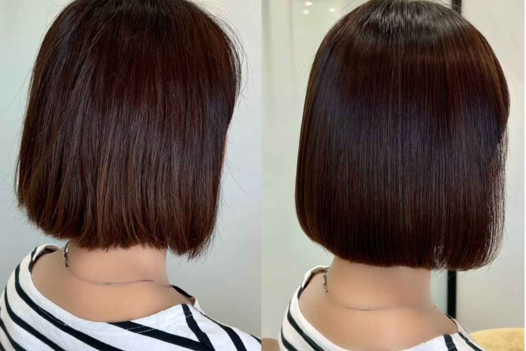 不規則なカラーダメージやアイロンの熱のダメージが髪の毛の
