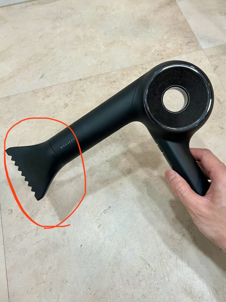 ドライヤーの先端に付いてるアレを外すと風を広範囲に