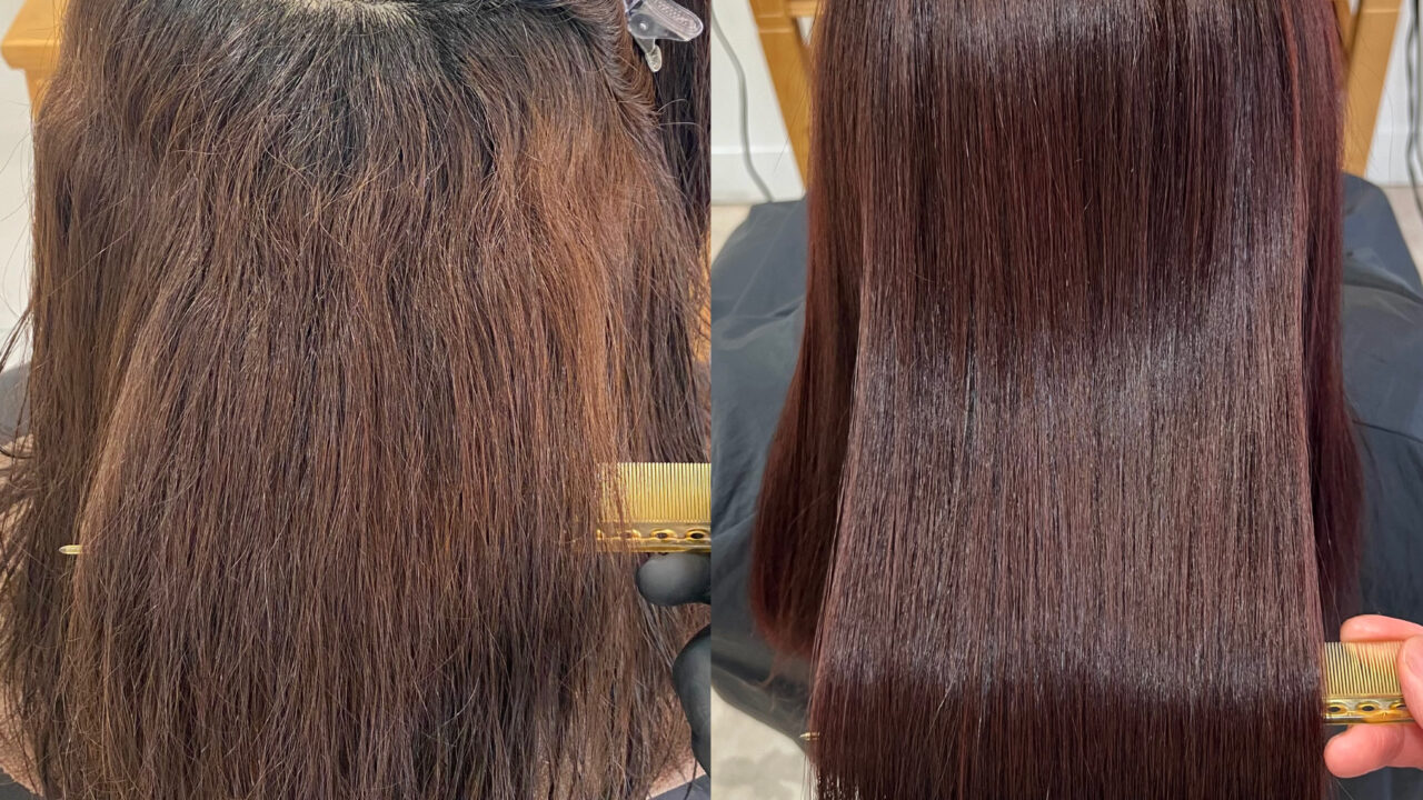 縮毛矯正を適切な薬剤と優しいアイロン操作で
