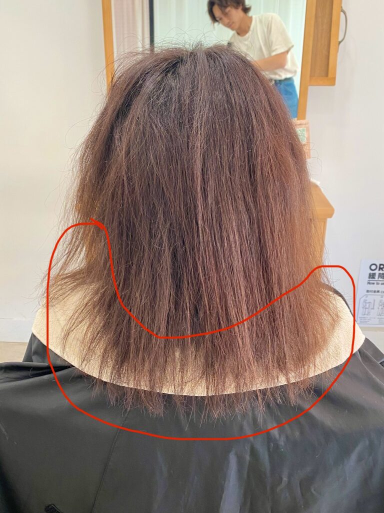 1枚目のケースは恐らくスキバサミで切られ過ぎている状態で